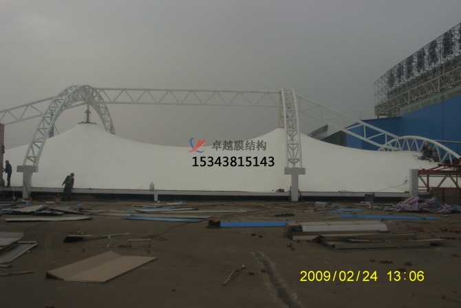 更后:商業(yè)街膜結(jié)構(gòu)穹頂?shù)闹饕獦?gòu)成有膜布,鋼結(jié)構(gòu)(Q235、無縫焊管、高頻焊管、H型鋼等),更主要的特性重量輕、強(qiáng)度高、防火難燃、自潔性好,不受紫外線影響、抗疲勞、耐扭曲、耐老化、使用壽命長(zhǎng)。具有高透光率,熱吸收量很少。正是因?yàn)檫@種跨時(shí)代的膜材料的發(fā)明,使膜結(jié)構(gòu)建筑成為現(xiàn)代化的永久性建筑。