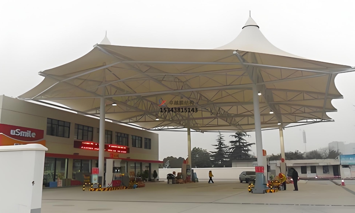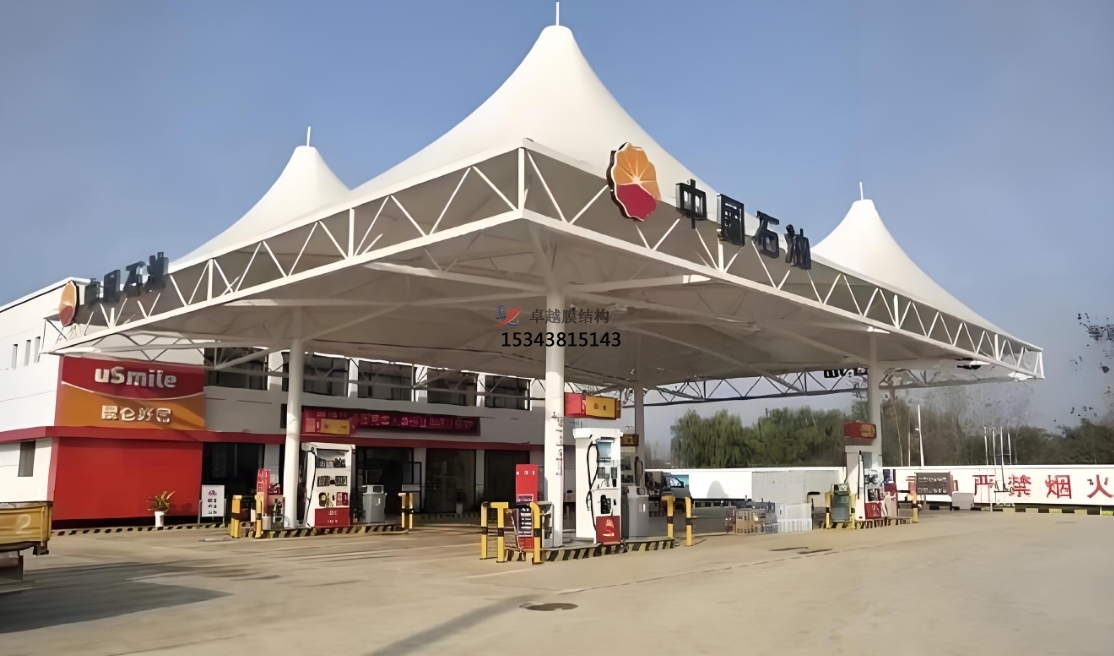 加油站頂棚膜結(jié)構(gòu)在建筑領(lǐng)域具有顯著的應(yīng)用價(jià)值。其采用高強(qiáng)度膜材,具有良好的耐候性和耐久性,確保加油站內(nèi)部環(huán)境舒適。此外,頂棚膜結(jié)構(gòu)自重輕,安裝便捷,有效降低施工難度。相較于傳統(tǒng)建筑,頂棚膜結(jié)構(gòu)具有以下優(yōu)勢(shì):首先,其自潔性能優(yōu)異,減少清潔成本;其次,膜材透光性佳,節(jié)約照明能源;最后,造型美觀,提升加油站整體形象。