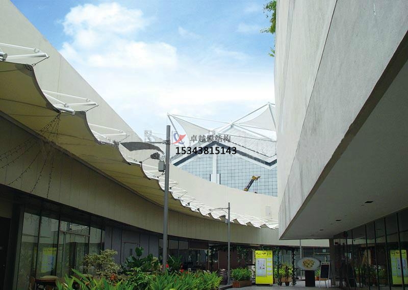 張拉膜一種新型的建筑建材,它是一種建筑與結構完美結合的結構體系,采用的是高輕度柔性薄膜材料與支撐體系相結合而形成具有一定剛度的穩(wěn)定曲面,能承受一定外荷載空間的結構形式。