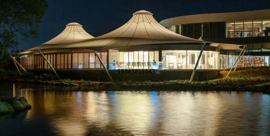 膜結(jié)構(gòu)帳篷酒店的設(shè)計理念強(qiáng)調(diào)與自然環(huán)境的和諧共生。酒店通常選址于風(fēng)景秀麗的自然景區(qū),如山林、湖畔、沙漠或草原,讓旅客在享受奢華住宿的同時,也能近距離感受大自然的魅力。帳篷酒店的外觀設(shè)計往往融入周邊的自然景觀,采用流線型或仿生形態(tài),仿佛是大自然中的一部分,與周圍的環(huán)境相得益彰。