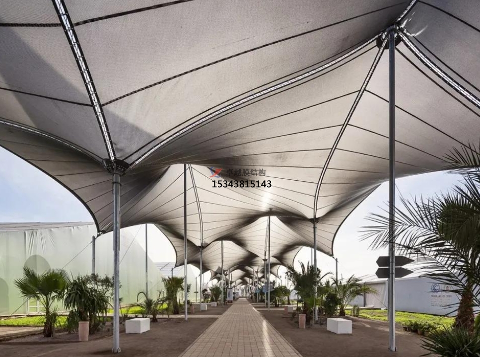 索膜結(jié)構(gòu),顧名思義,是由高強(qiáng)度柔性薄膜材料與其他材料(如鋼索、鋼結(jié)構(gòu)支柱等)共同作用而形成的一種穩(wěn)定的空間結(jié)構(gòu)形式。其最大的特點(diǎn)在于造型自由、輕巧、柔美,能夠創(chuàng)造出各種優(yōu)美的曲面造型,給人以強(qiáng)烈的視覺沖擊力。此外,索膜結(jié)構(gòu)還具有阻燃、制作簡(jiǎn)易、安裝快捷、節(jié)能、易于維護(hù)以及使用安全等優(yōu)點(diǎn),這些特點(diǎn)使得它在世界各地得到了廣泛的應(yīng)用。