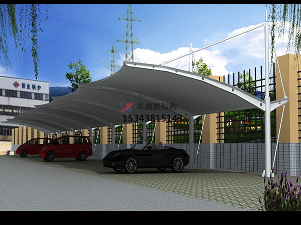 2、較為簡單的方法是將許多膜結(jié)構(gòu)車棚膜片排成一排并加以固定,不過不能夠防水;
