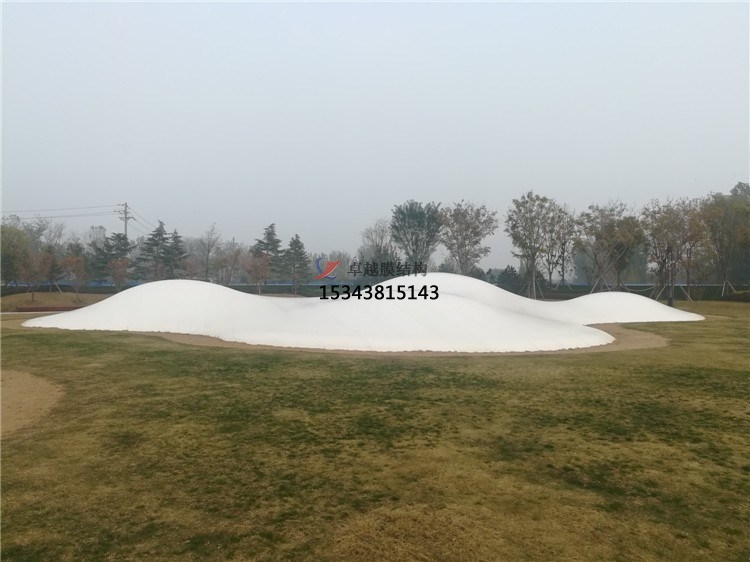蹦蹦云是長久固定在沙土地面上的,它是由外膜、內(nèi)膜、送風(fēng)管道、泄壓管道、地面膜材錨固裝置、膜內(nèi)緩沖軟墊、膜外緩沖沙坑、供風(fēng)與壓力控制集成房子等組成的。不懼風(fēng)雨等惡略天氣。遠(yuǎn)看是景觀,踩上是蹦床,兒童蹦蹦云樂園的景觀和游樂雙重屬性讓它適合多種使用環(huán)境,涵蓋景區(qū)公園、農(nóng)業(yè)采摘園、休閑農(nóng)莊、農(nóng)家樂、生態(tài)園、觀光園、度假村、游樂園、特色小鎮(zhèn)等大型室外開放式親子互動游樂設(shè)施的需要。