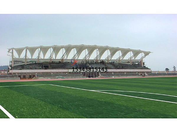 膜結構車棚膜結構所用的膜材料為具有、阻燃、耐久、自潔等特性的復合材料,一般由基布和涂層二部分組成?;贾饕捎镁壑w維或玻璃纖維絲編織而成,有平織和絞等多種編織方法,不同的膜結構車蓬編織方法影響著膜材料的經緯向力學性能指標,膜的抗拉強度和抗撕裂強度等;涂層材料主要有聚四氟乙烯和聚氯乙烯,在一定程度上提高了膜材料各項強度指標,為提高膜材料的耐久、自潔等特性,表面往往有一層氟涂層或硅涂層,膜材料的耐火、耐久及防水、自潔等性能,決定著膜材料的物理特性。