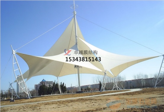 膜結(jié)構(gòu)景觀是近一段時間內(nèi)獲得迅猛發(fā)展的一種新型空間結(jié)構(gòu),它由于只承受張力,使得材料受力性能得到充分發(fā)揮,而且以重量輕,允許跨越大空間和設(shè)計(jì)成各種外形,施工周期短,維護(hù)方便,造價低廉,可滿足多方面的使用要求,易與自然環(huán)境融為一體等優(yōu)點(diǎn),被國際建筑界譽(yù)為二十一世紀(jì)的建筑。