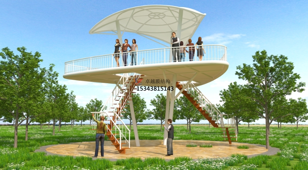 景觀棚膜結(jié)構(gòu)常常被用來打造遮陽避雨的休閑場所。游客們可以在膜結(jié)構(gòu)景觀棚下休憩、欣賞周邊的美景,感受大自然的氣息,同時又能免受烈日暴曬和雨水侵襲之苦。而且,這些造型各異的景觀棚本身也成為了公園和景區(qū)內(nèi)一道亮麗的風(fēng)景線,吸引著眾多游客駐足拍照留念。