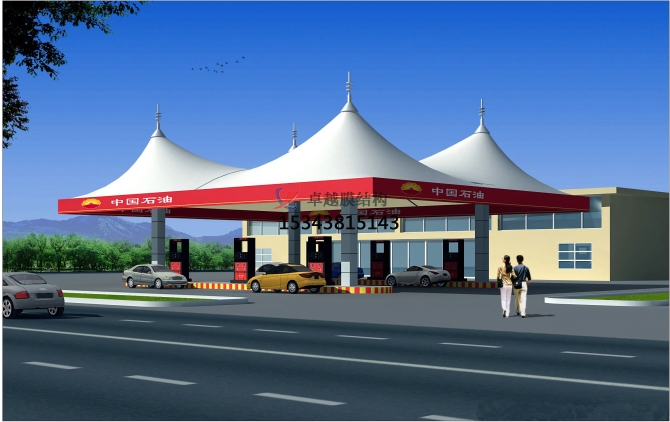 膜結(jié)構(gòu)加油站,突破傳統(tǒng)的建筑結(jié)構(gòu),造型優(yōu)美,高雅,自然,金融和藝術(shù)的,機械的。膜結(jié)構(gòu)與造型學(xué),色彩學(xué)為依托,可結(jié)合自然條件及民族風(fēng)情形式,可以充分發(fā)揮建筑師的想象力,并構(gòu)建了各種形狀和色彩豐富,膜結(jié)構(gòu)加油站是21世紀(jì)的現(xiàn)代高科技綠色環(huán)保建筑。